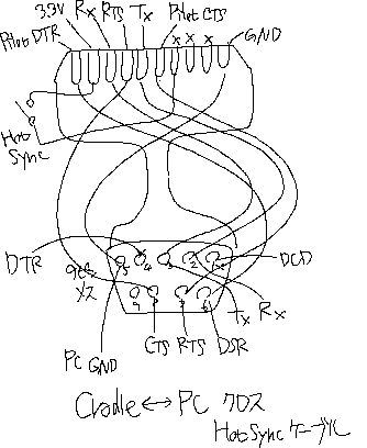 シリアルマウス/GPSレシーバ/PilotのCradle/CrossPadなど、 PC互換機のシリアル端子に接続できる機器を Pilotに接続して使うために、ストレートの短いシリアルケーブルを 作っておけば便利である。