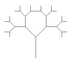 Figure 9: A fractal tree. Although its fractal dimension is the same as that of Figure 3, its edges do not overlap each other.